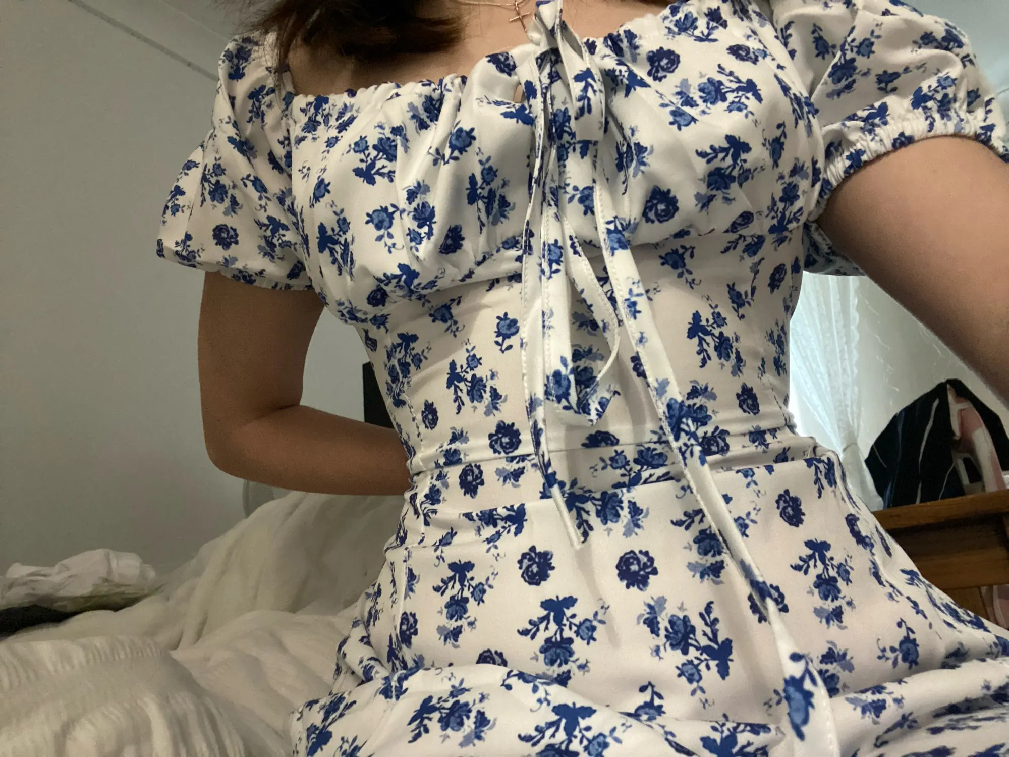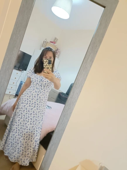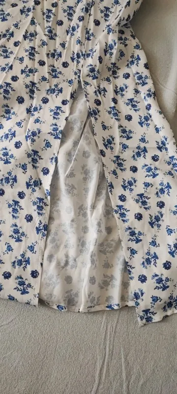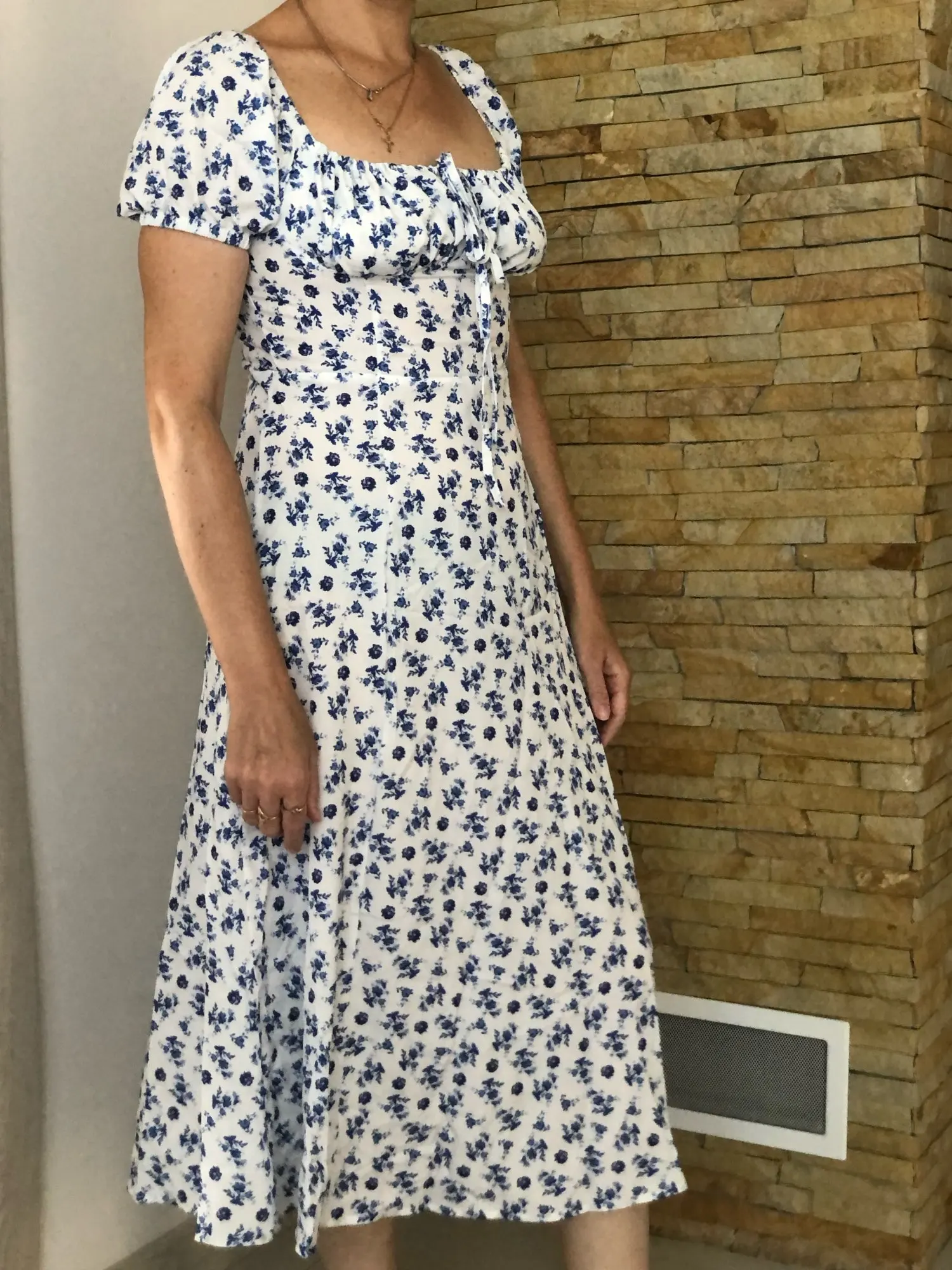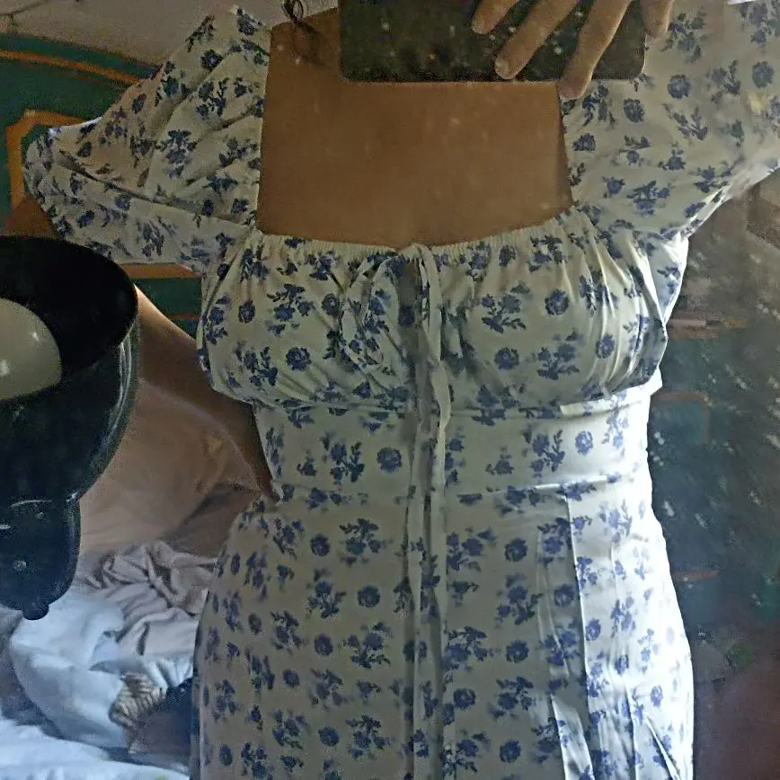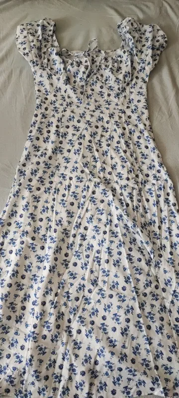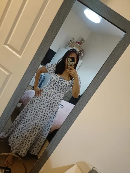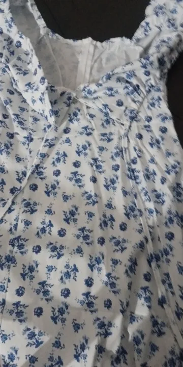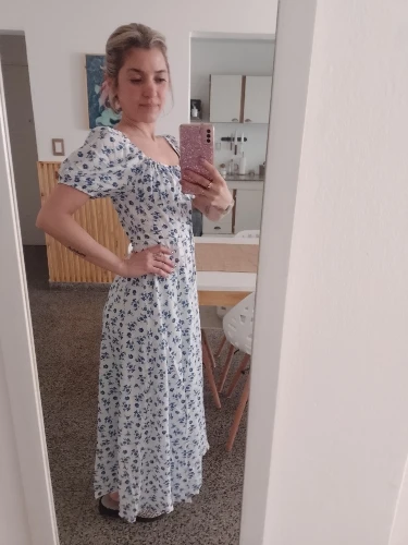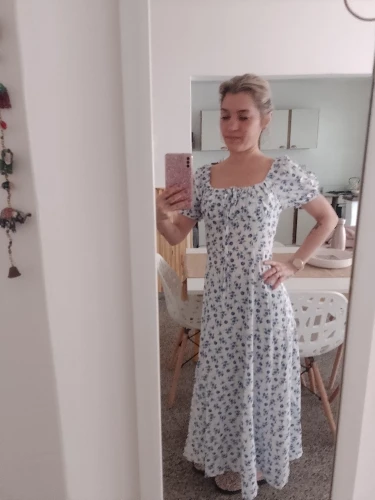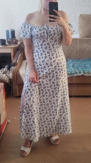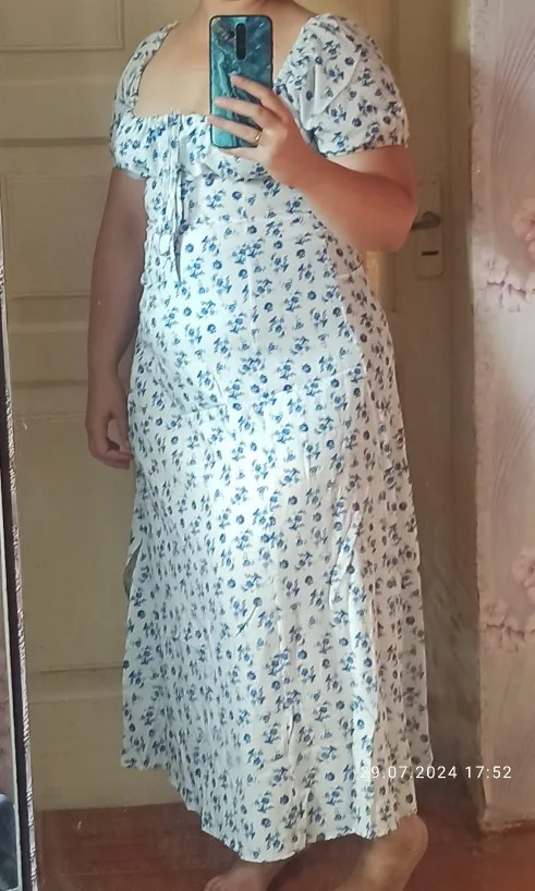 OMG. this dress is literally the prettiest dress ive ever seen!! its so airy yet not baggy to look bad on me. i struggle a lot with dresses as they always are too big for me, but the first time this is actually so pretty! the length is perfect for me (im 4’11 for ref) and it’s honestly so perfect for sizing! the fabric is amazing and so so soft. i really recommend this!! the only thing i would say that it’s not right around the waist, so if your looking for one like that this probably isn’t good for you however it still has a slimming effect!!