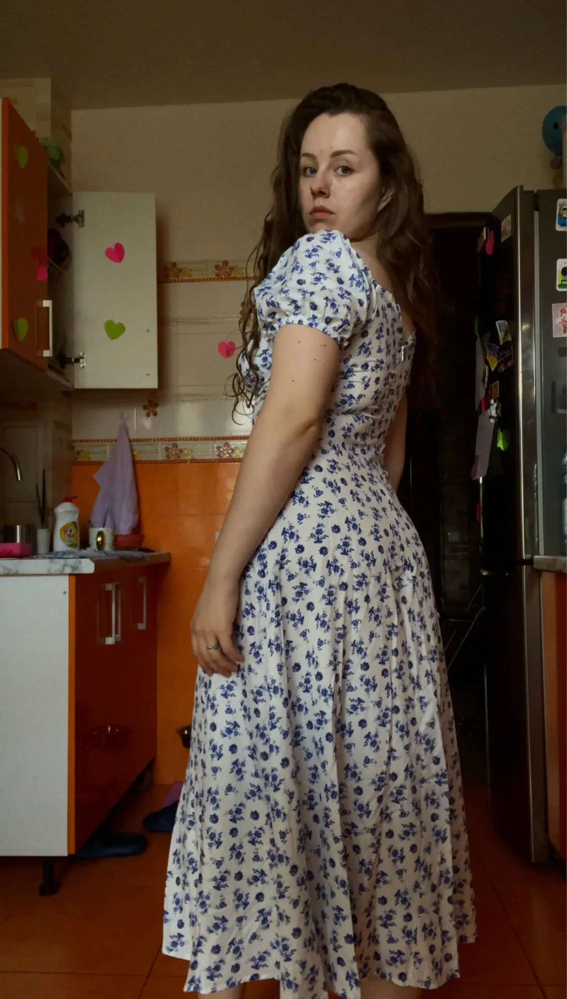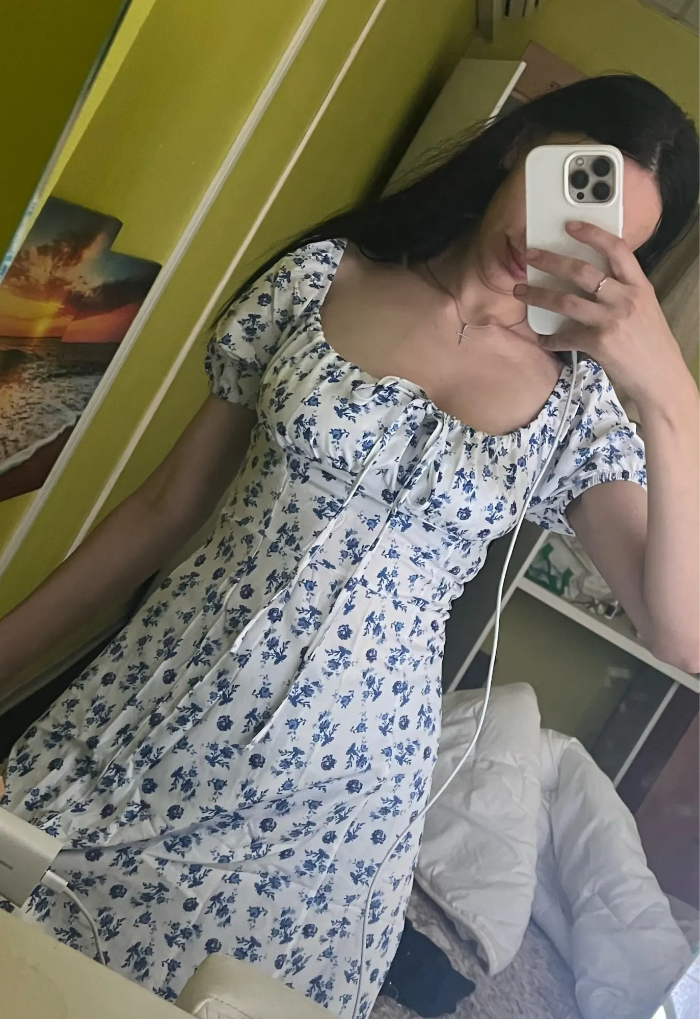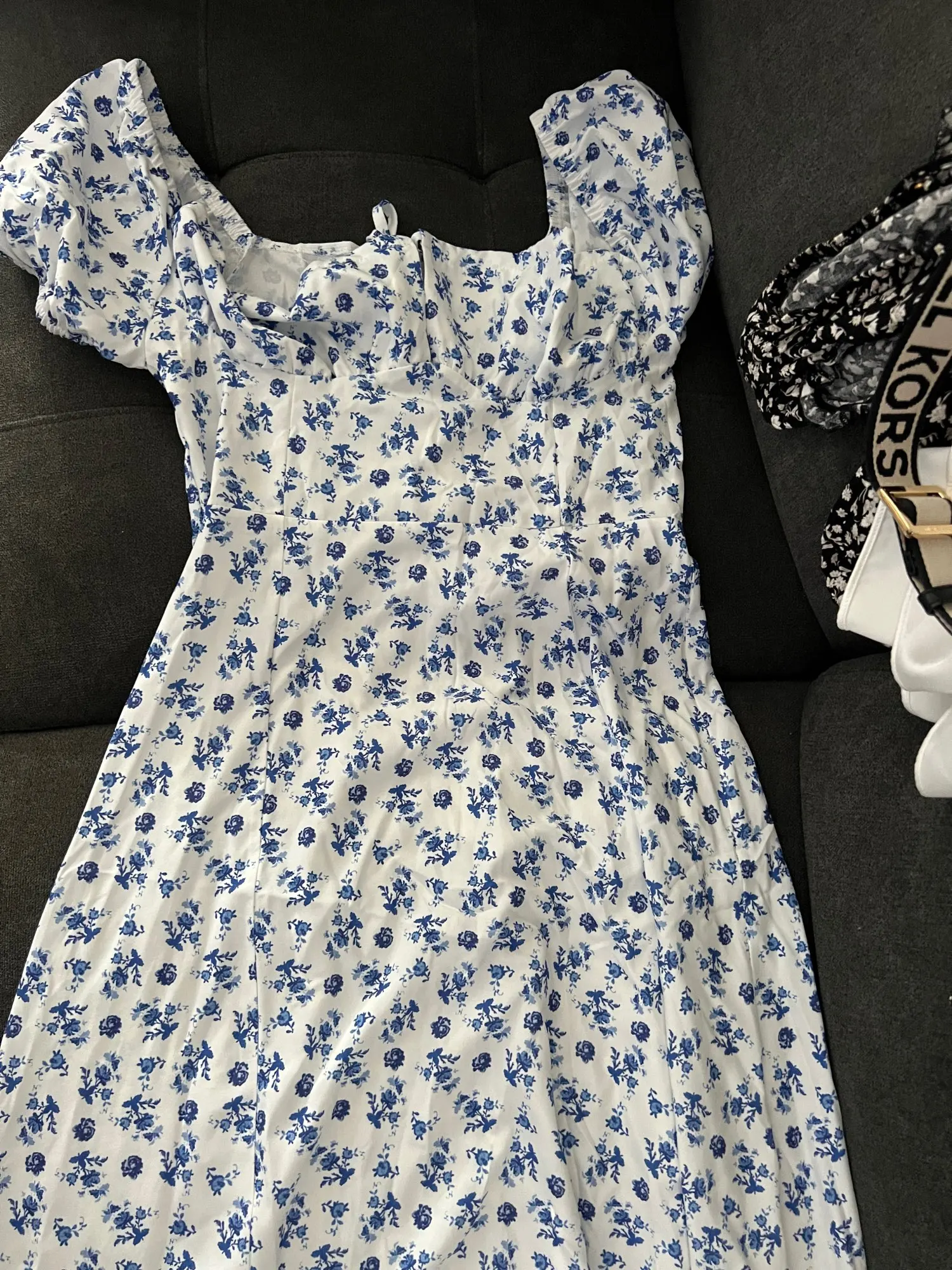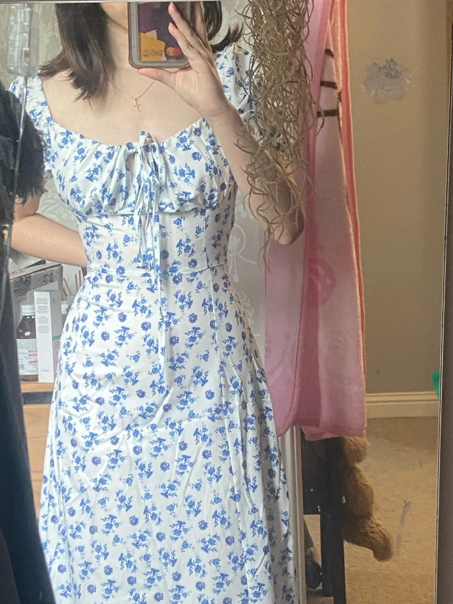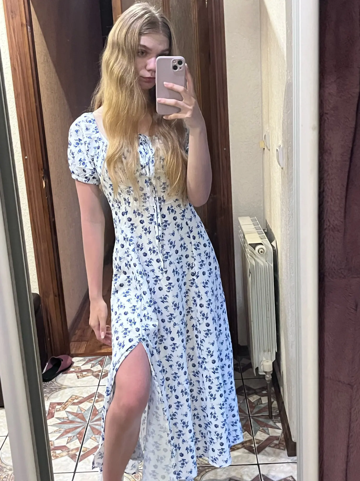 OMG. this dress is literally the prettiest dress ive ever seen!! its so airy yet not baggy to look bad on me. i struggle a lot with dresses as they always are too big for me, but the first time this is actually so pretty! the length is perfect for me (im 4’11 for ref) and it’s honestly so perfect for sizing! the fabric is amazing and so so soft. i really recommend this!! the only thing i would say that it’s not right around the waist, so if your looking for one like that this probably isn’t good for you however it still has a slimming effect!!