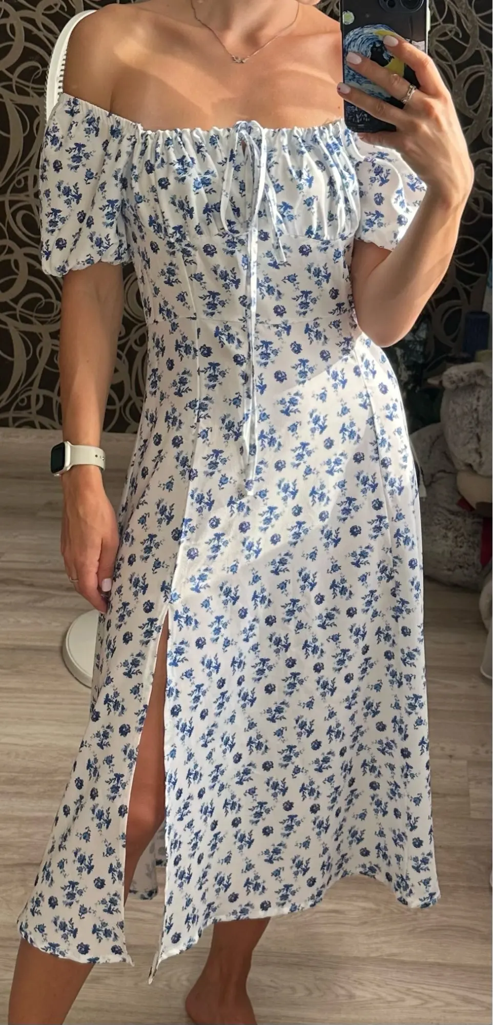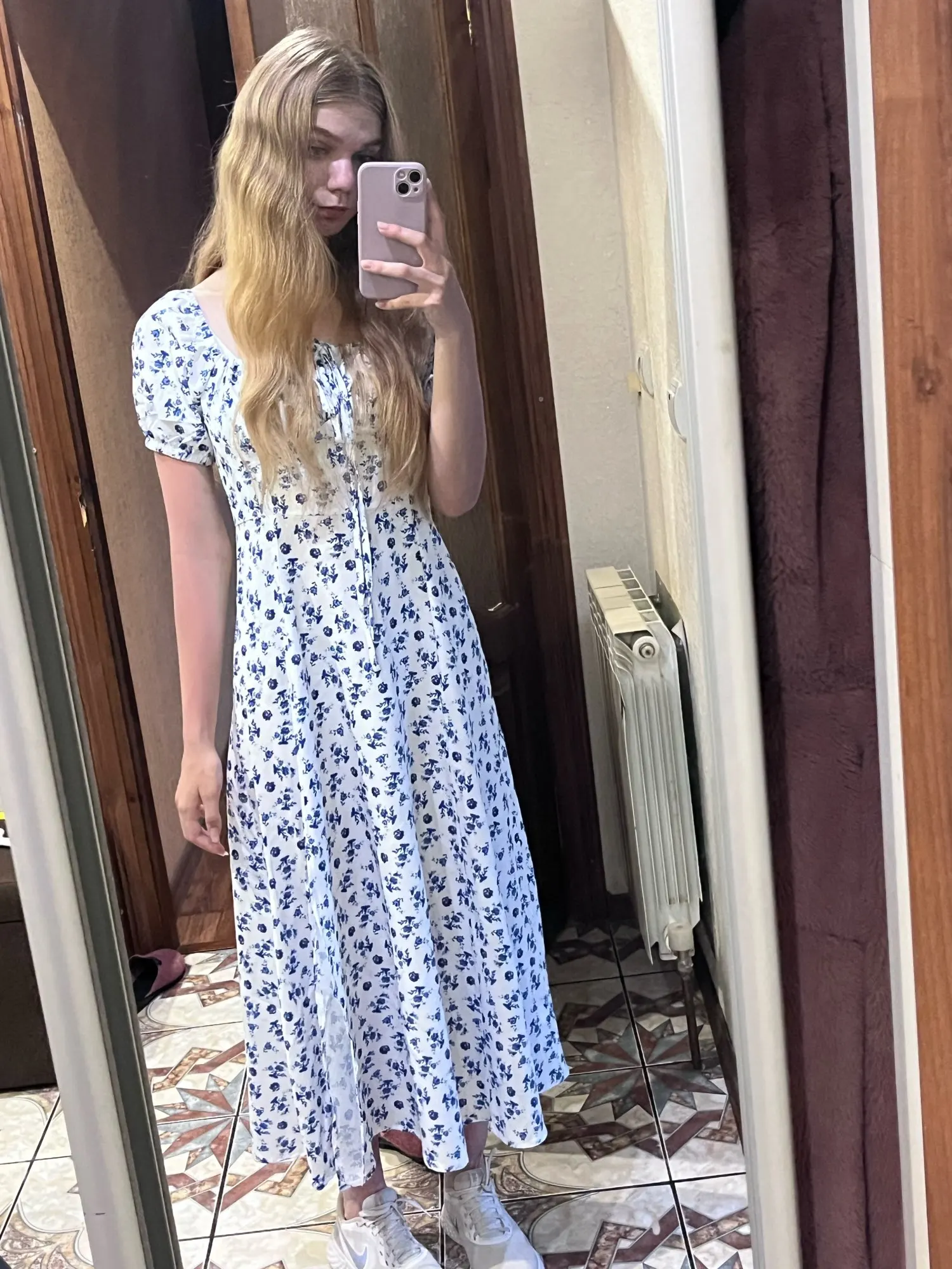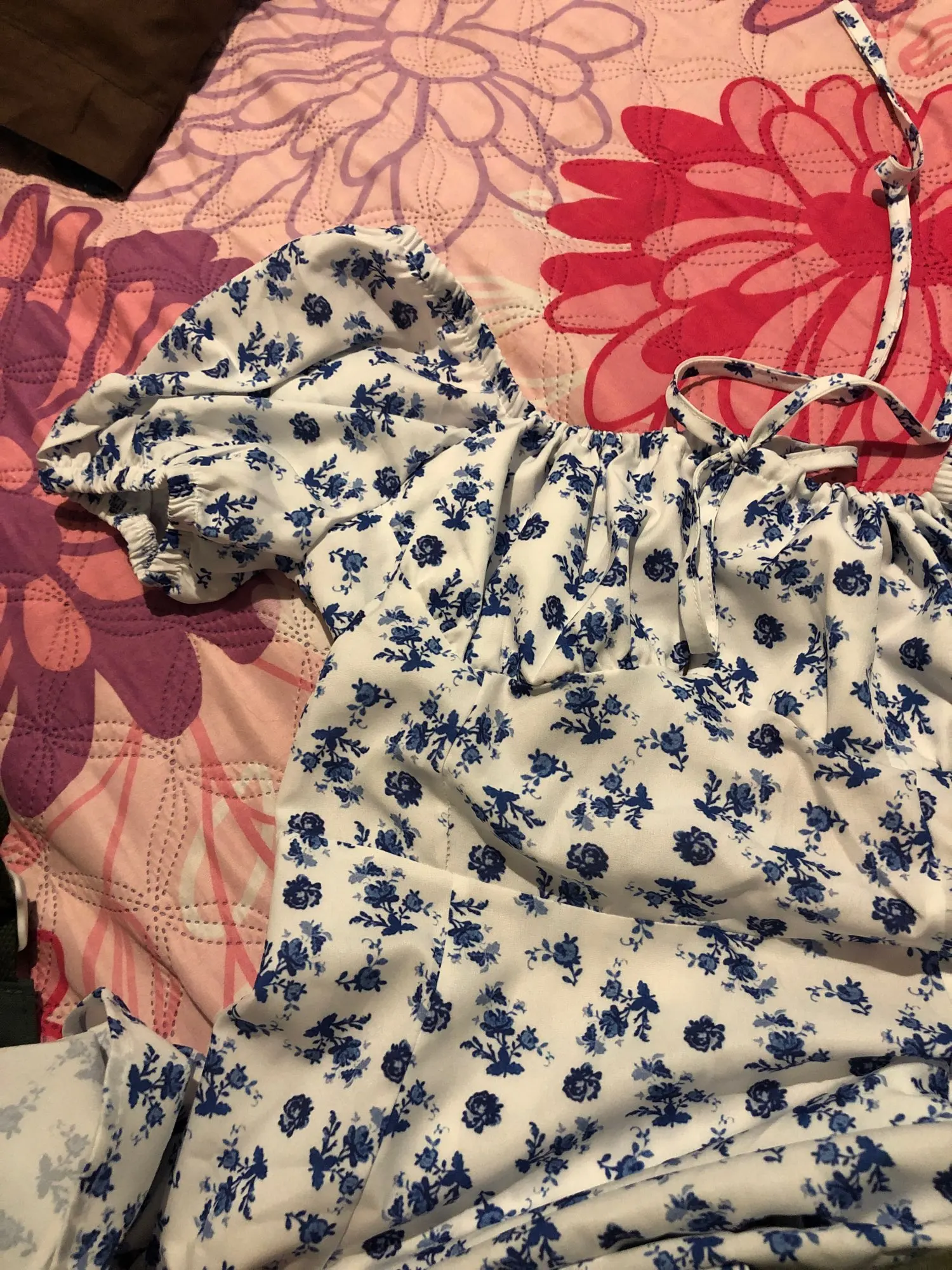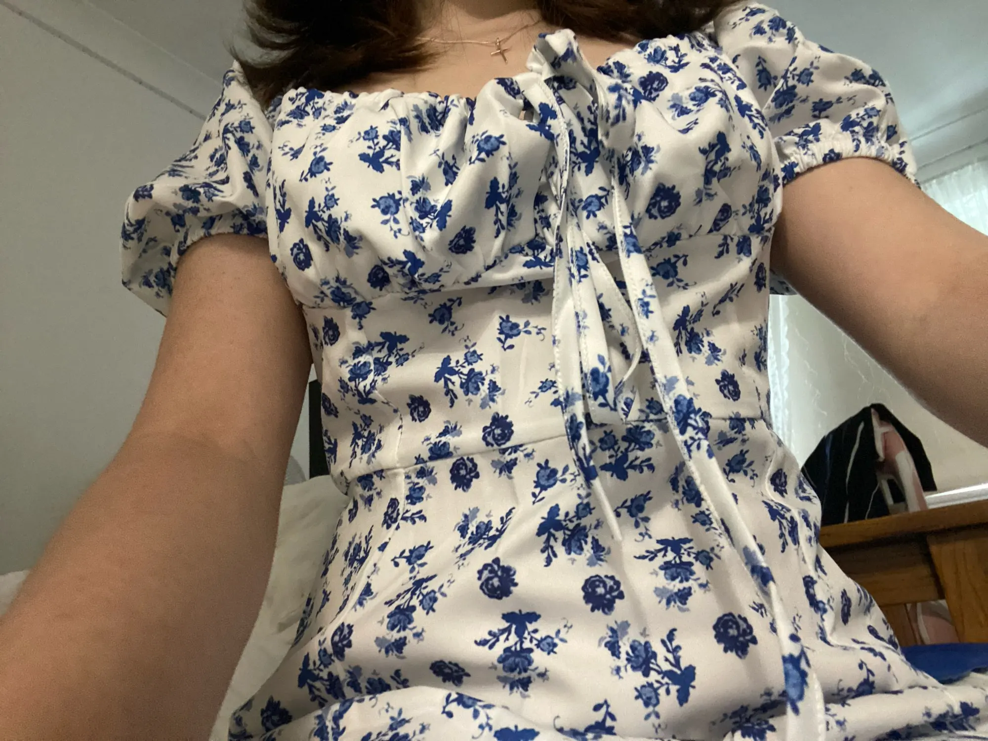 OMG. this dress is literally the prettiest dress ive ever seen!! its so airy yet not baggy to look bad on me. i struggle a lot with dresses as they always are too big for me, but the first time this is actually so pretty! the length is perfect for me (im 4’11 for ref) and it’s honestly so perfect for sizing! the fabric is amazing and so so soft. i really recommend this!! the only thing i would say that it’s not right around the waist, so if your looking for one like that this probably isn’t good for you however it still has a slimming effect!!