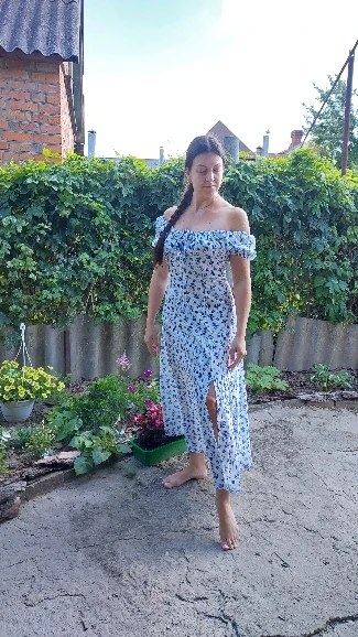 The shipment was very fast. Arrived packed in a simple plastic bag. Guide Me by the size chart and comments and I got it right, it fits well. My parameters are 92/74/95 and 165 height, it reaches me a little higher than the ankle. It feels a little tight the rubber of the arm and under the chest, but it is absolutely comfortable and beautiful, I recommend it to. It’s a nice dress.